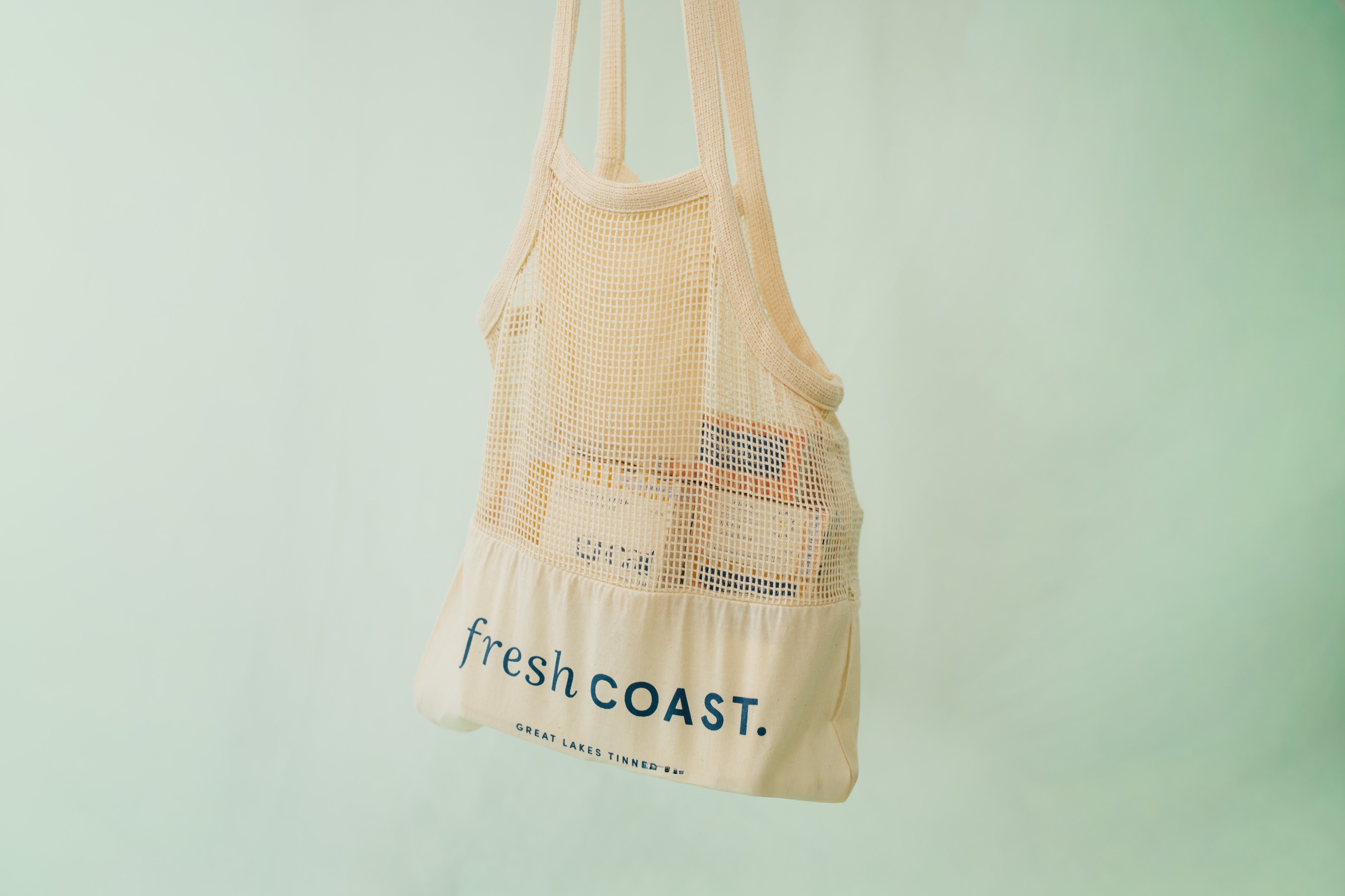 Add your fresh farmer's market haul to your fresh coast mesh tote for a handy alternative to plastic bags. Stash it in your bag or car for quick runs, and rep the Great Lakes wherever you go.